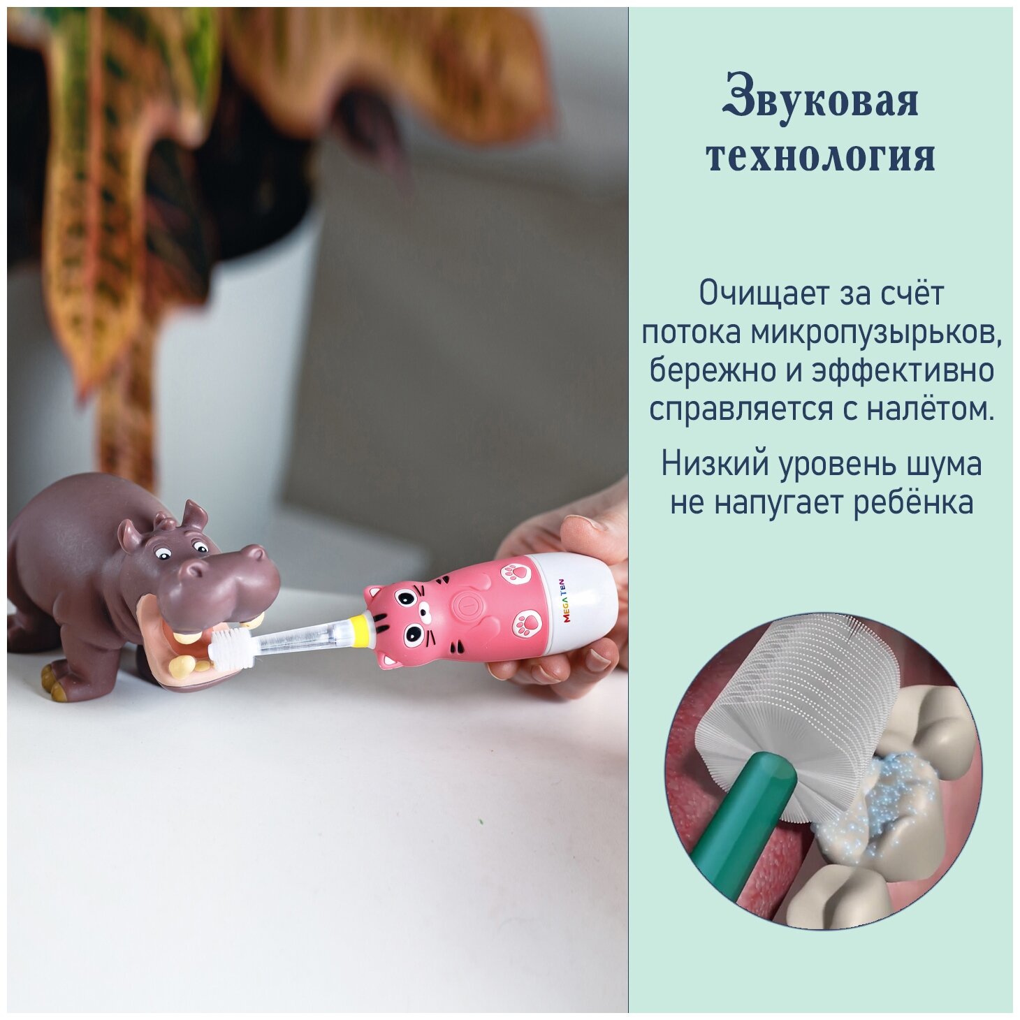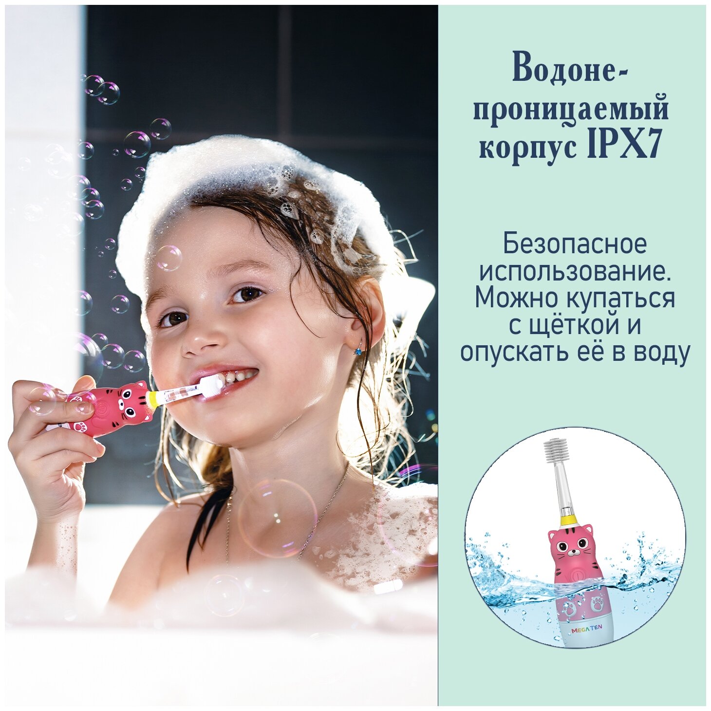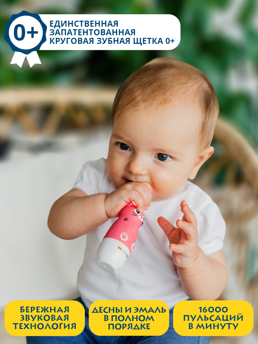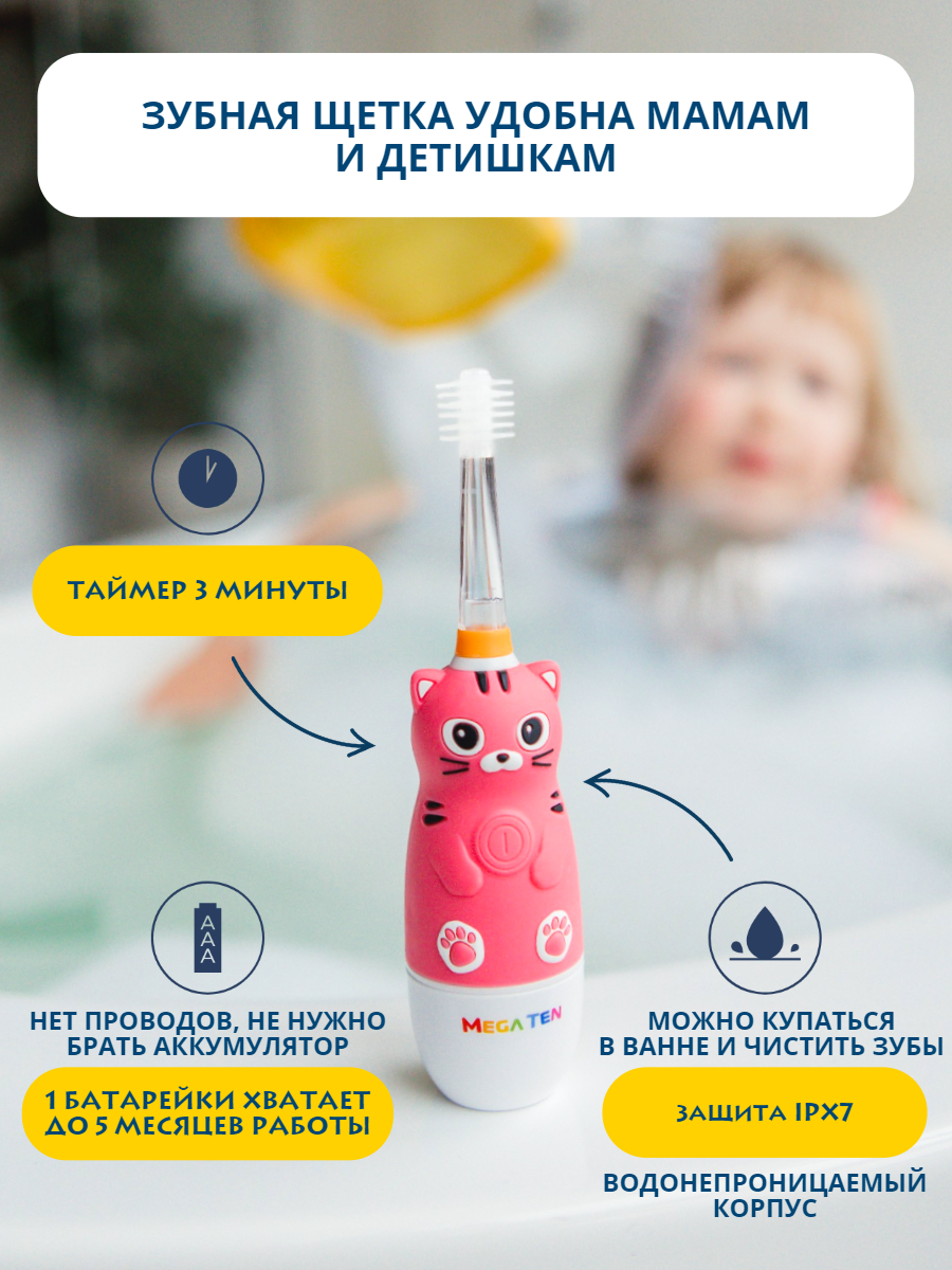 Электрическая детская звуковая зубная щетка котенок В наборе MEGA TEN megaten KIDS SONIC интересное: