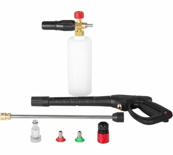| Подробная комплектация | - мойка высокого давления; - пистолет-распылитель разборный; - шланг высокого давления; - пеногенератор; - игла для очистки сопла; - сменные форсунки, 2 шт; - фильтр; - быстросъёмный коннектор для шланга подачи воды; - руководство по эксплуатации |