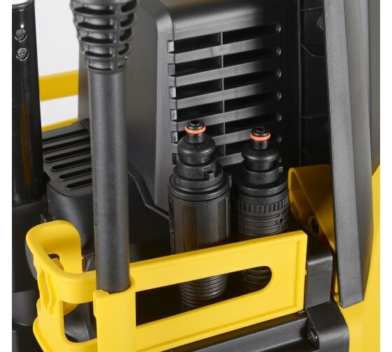 На мой взгляд - лучше бы отказались от транспортировочной ручки, и сделали нормальные места для насадок, пистолета и шланга.