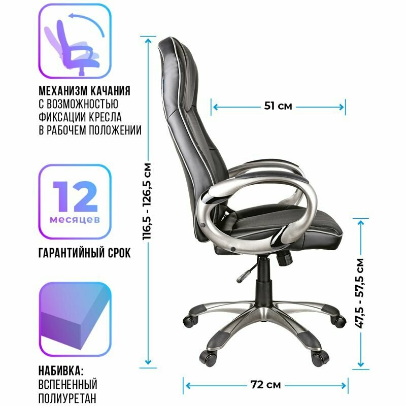 Кресло игровое Helmi "Apex", экокожа черная, серая вставка (274805)