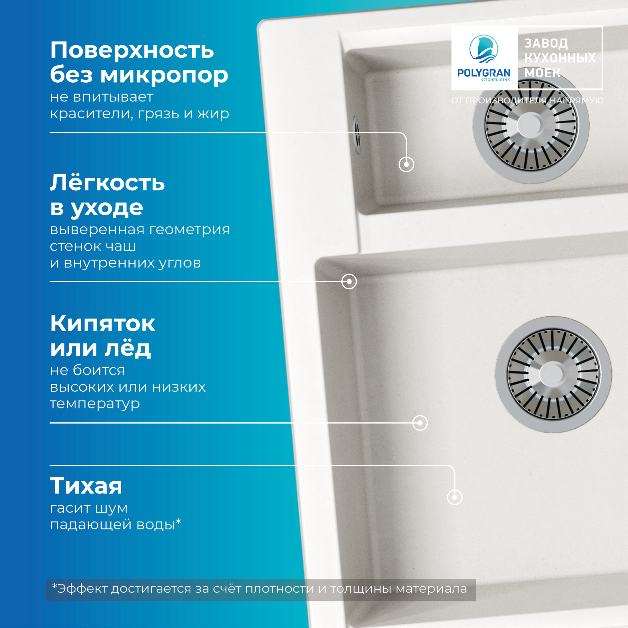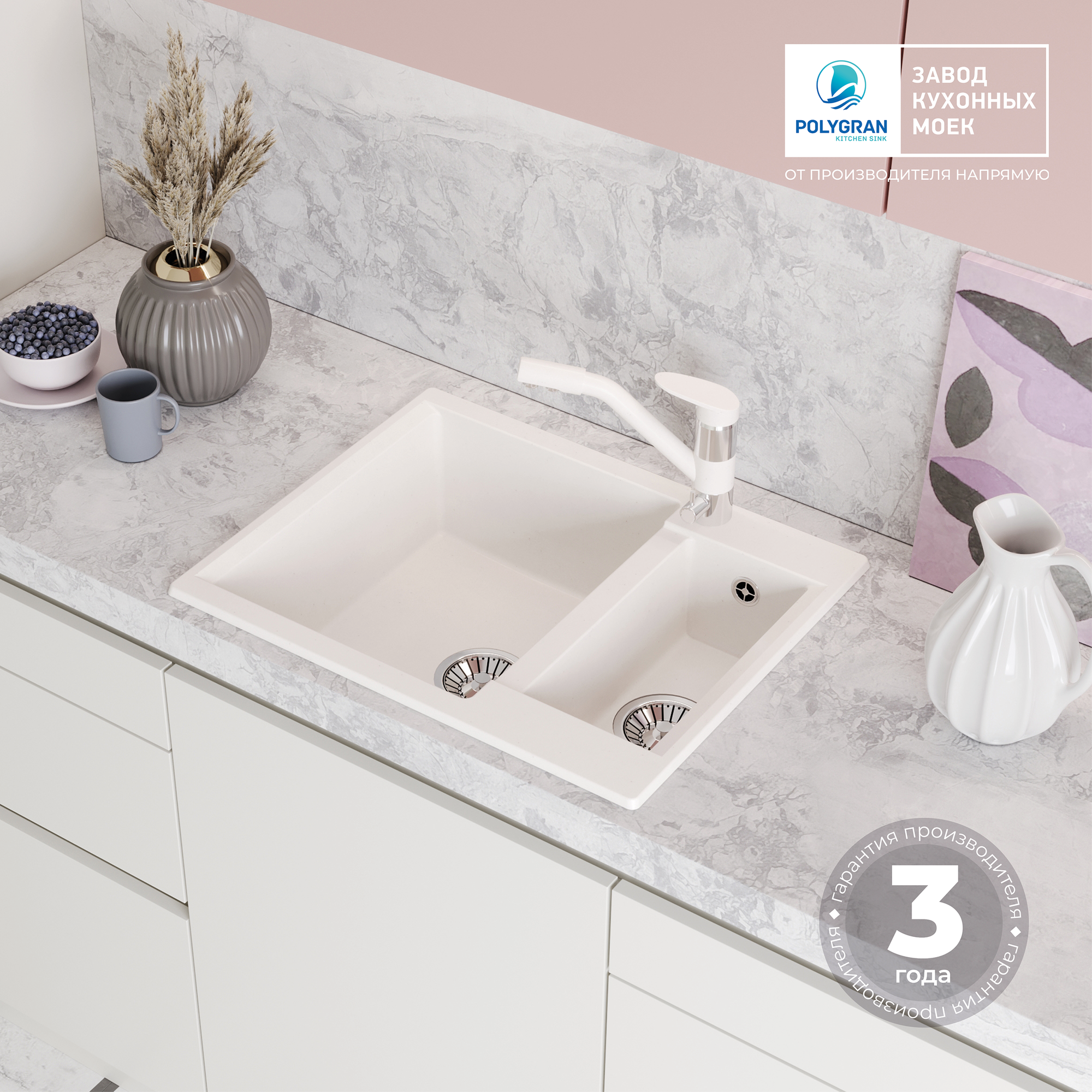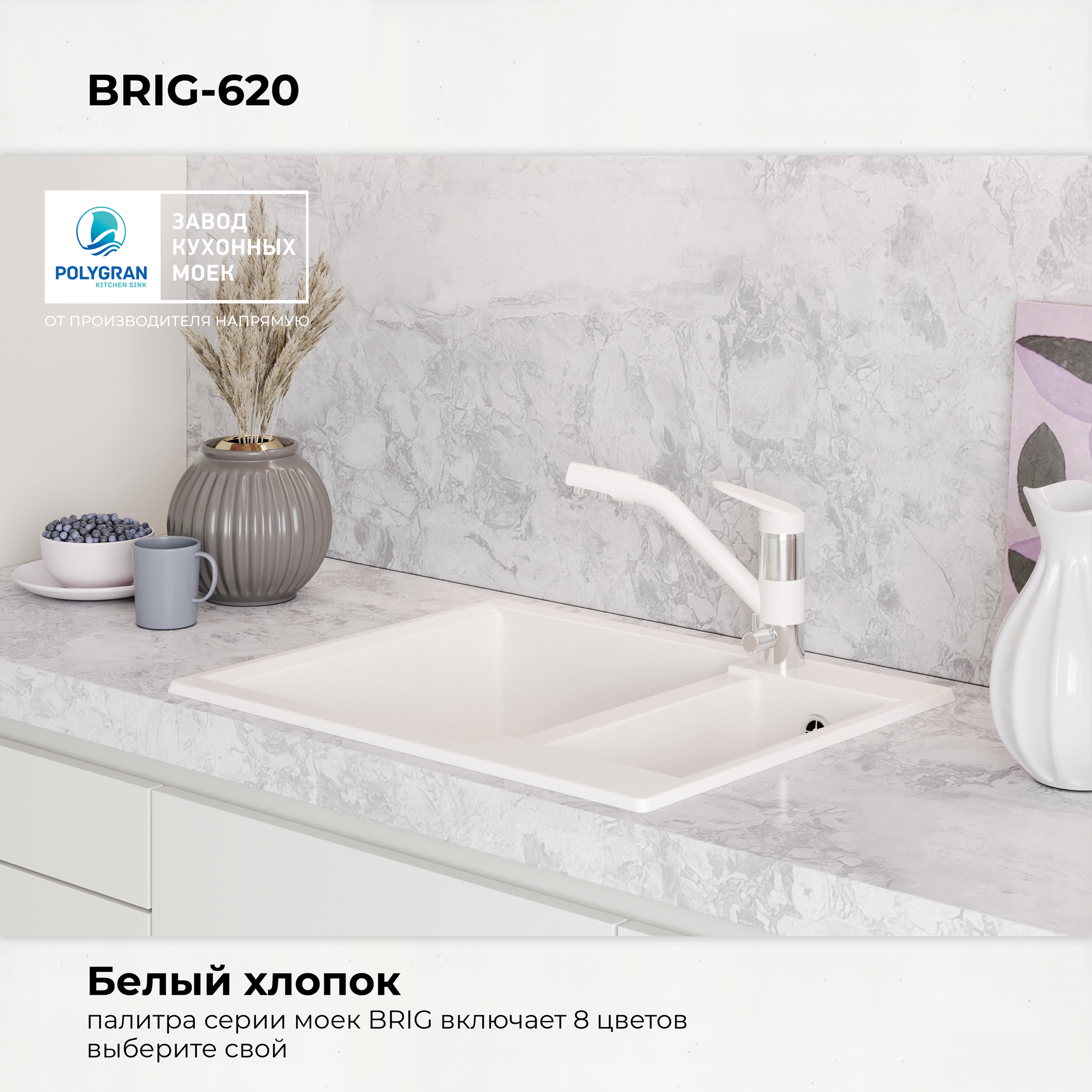 Мойка для кухни Polygran BRIG-620 белый хлопок 473394