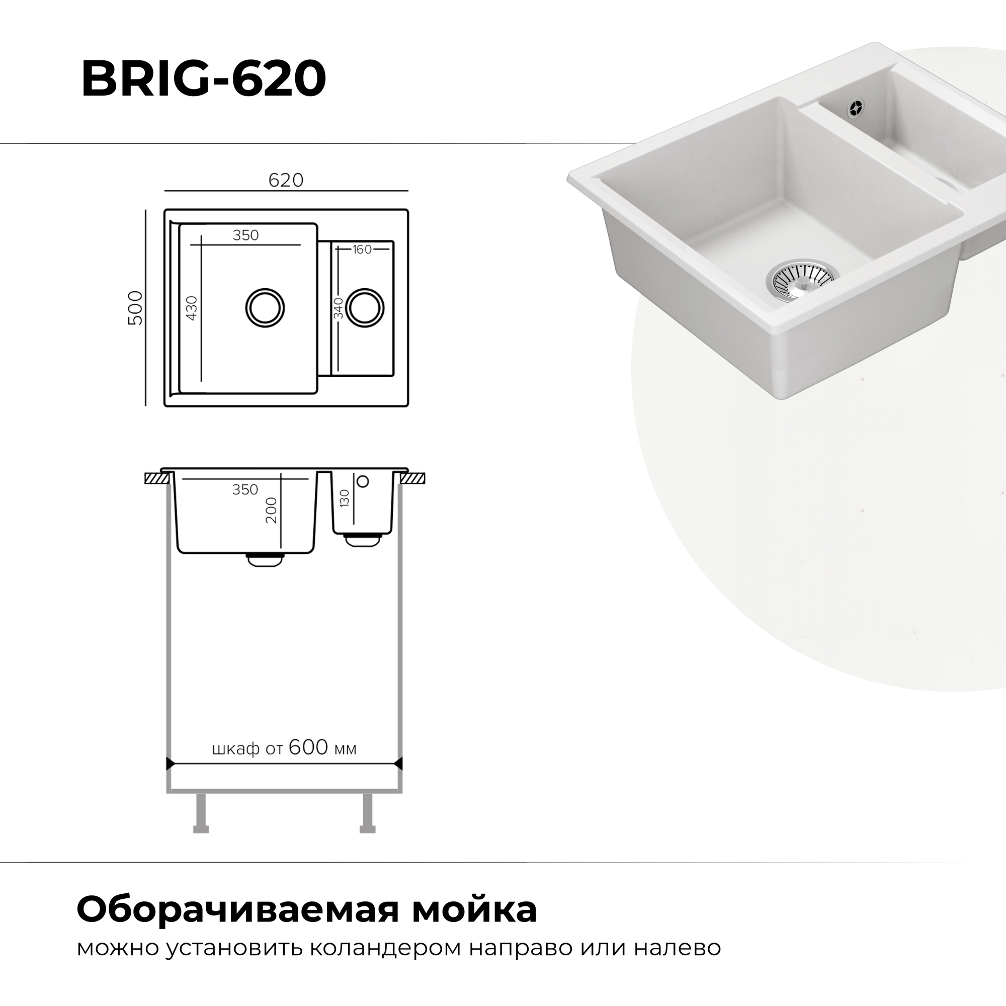 СохранитьКухонная мойка Polygran BRIG-620 Белый Хлопок (N36) интересное:
