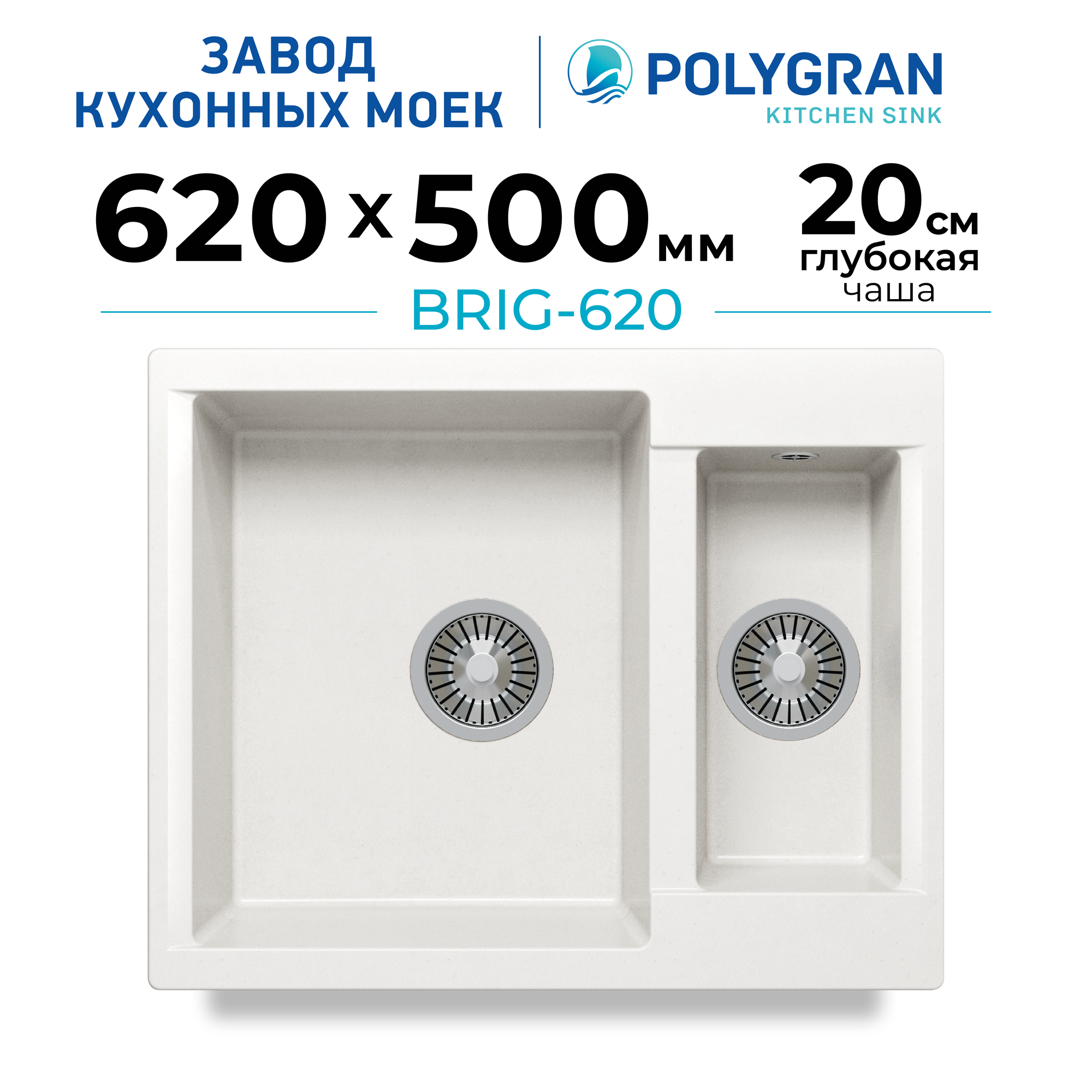 Мойка для кухни Polygran BRIG-620 белый хлопок 473394