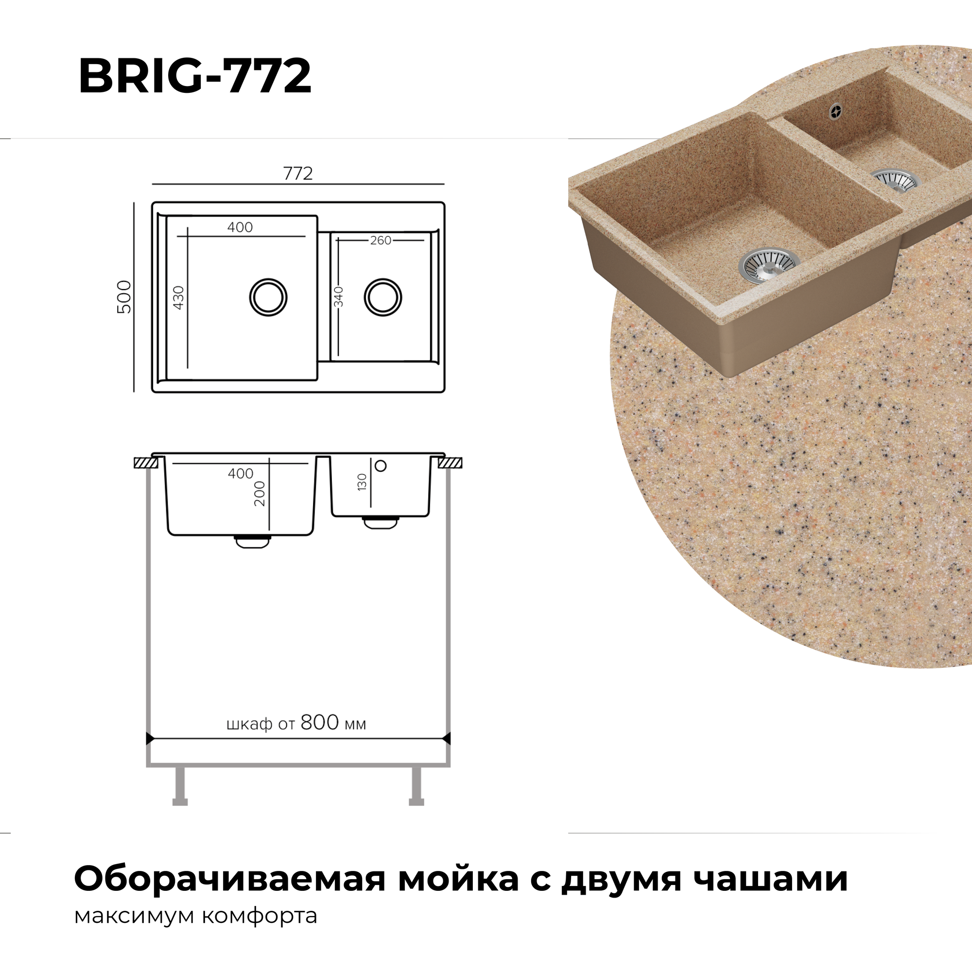Кухонная мойка Polygran BRIG-772 №302 Песочный 621510