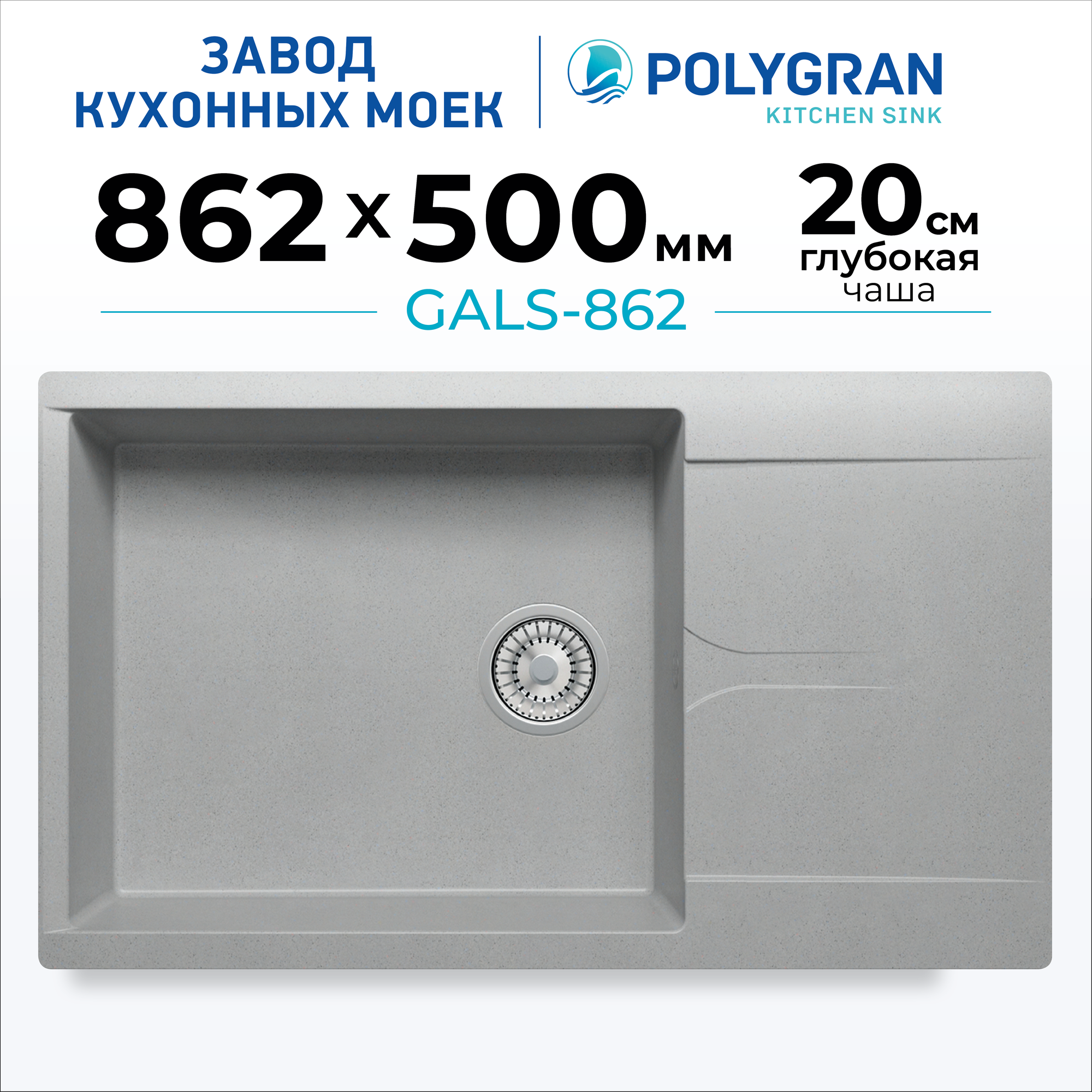 Мойка для кухни POLYGRAN Gals-862 каменная с удлиненным крылом (№314 Светло-серый)