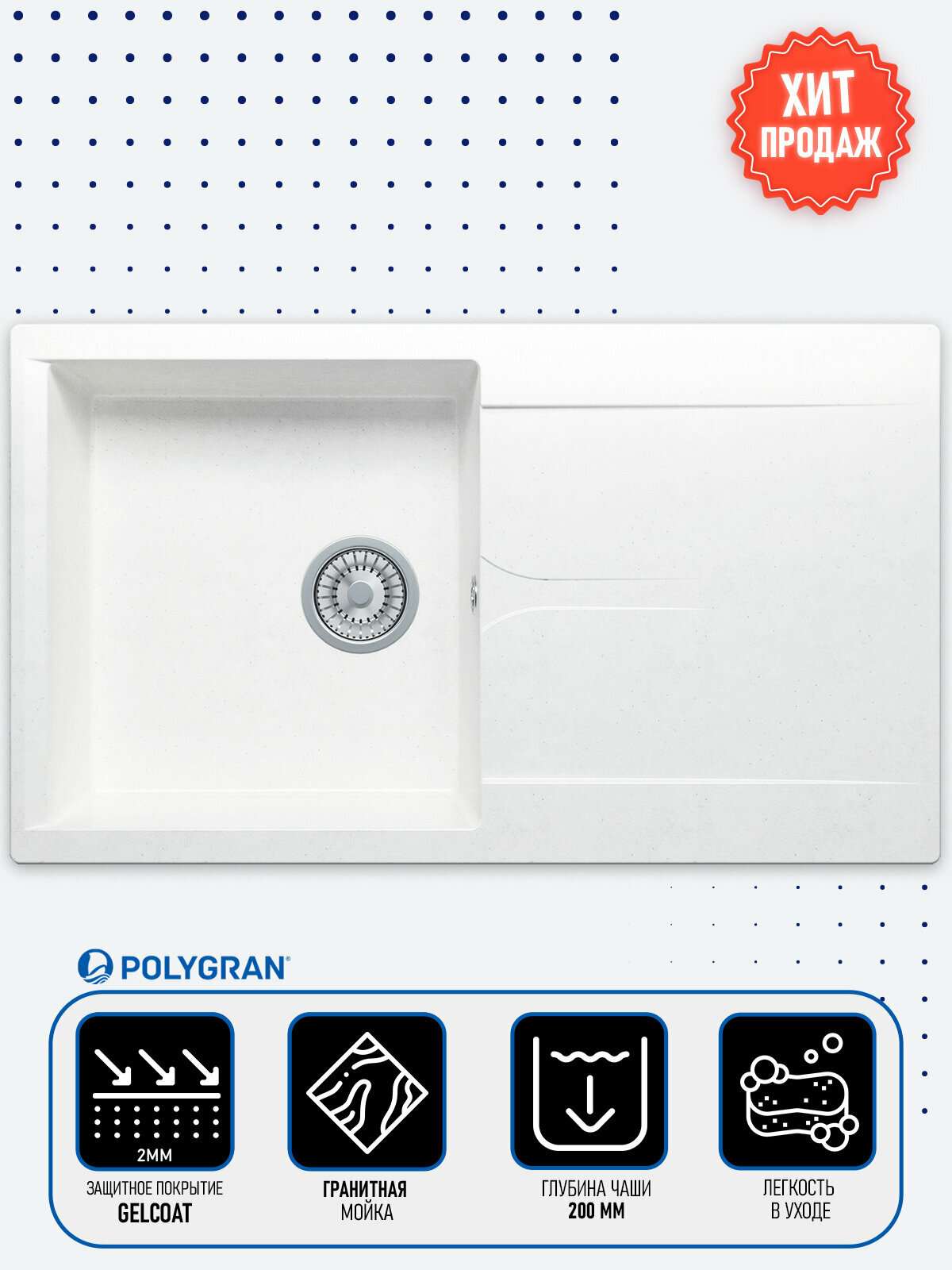Polygran Мойка кухонная Polygran Gals 860 белый хлопок