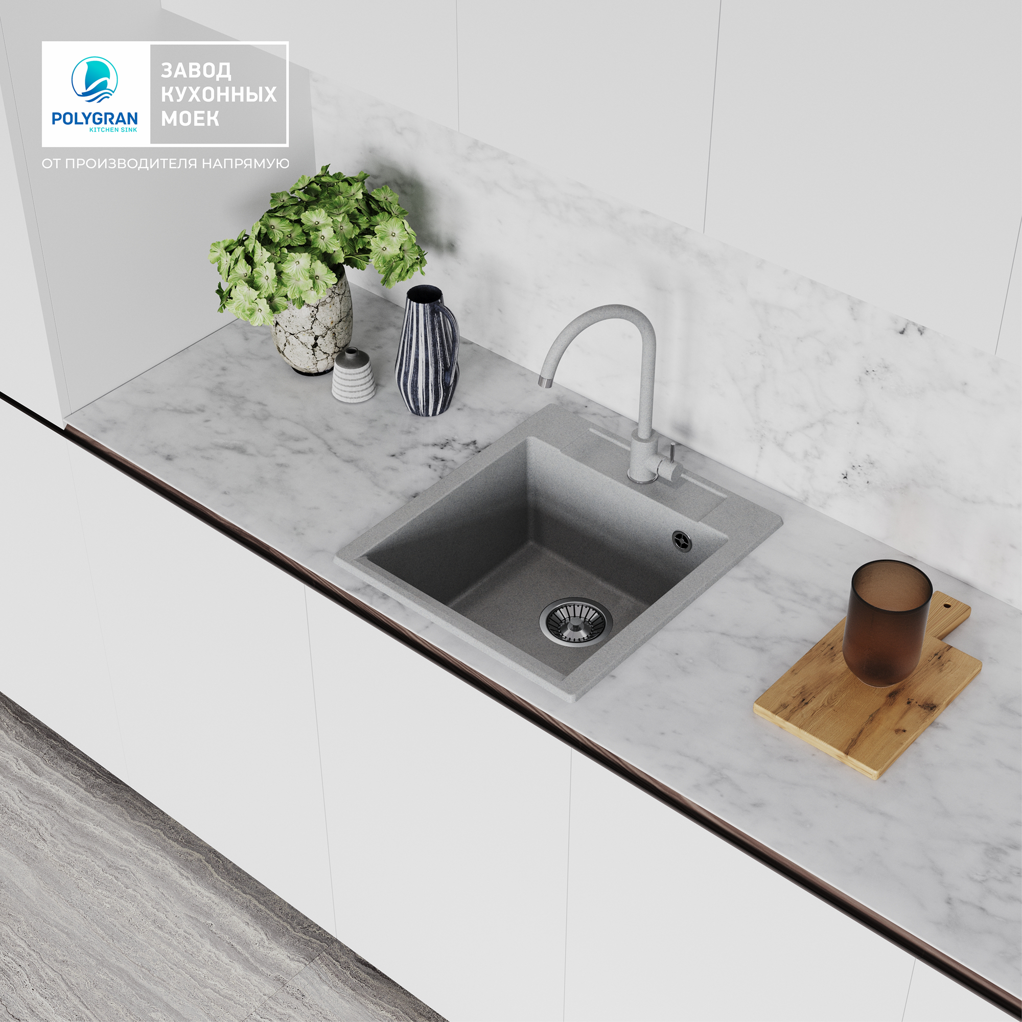 Мраморная кухонная мойка Polygran Argo-460 №16
