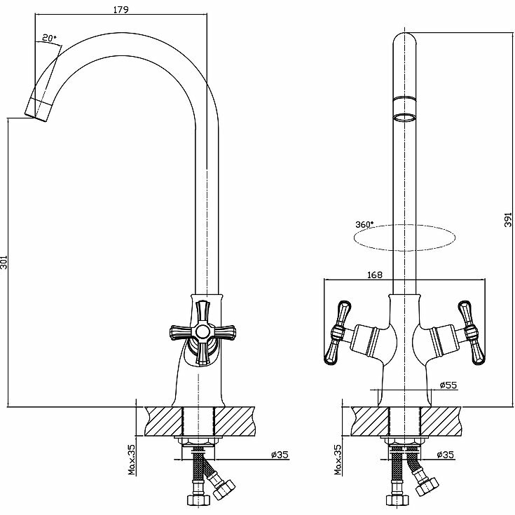 | Высота излива | 301 мм / 391 мм |
