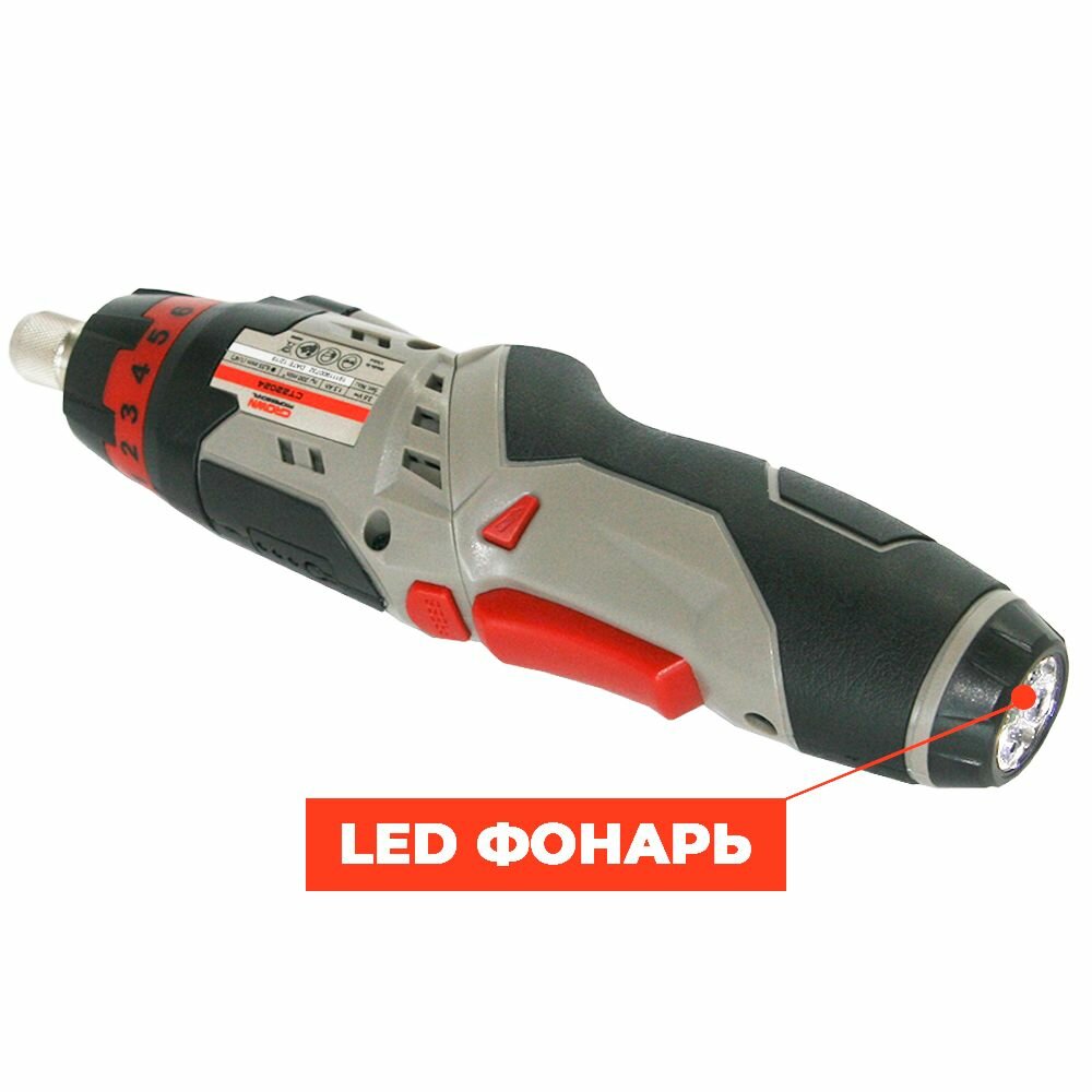 Шуруповерт аккумуляторный CROWN CT22024 MC (3,6В, 1,5Ah Li-Ion, 200об/мин, 0,4кг, подсветка, биты 30шт)
