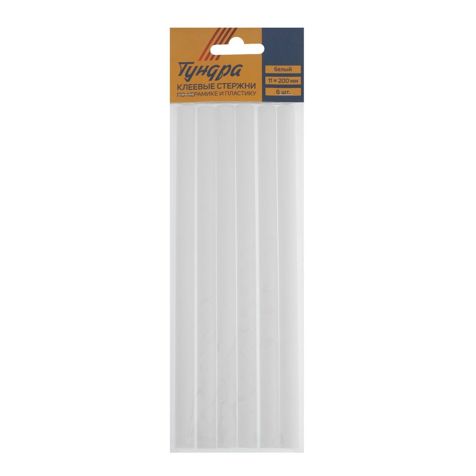 Клеевые стержни тундра, 11 х 200 мм, белые (по керамике и пластику), 6 шт. (1шт.)