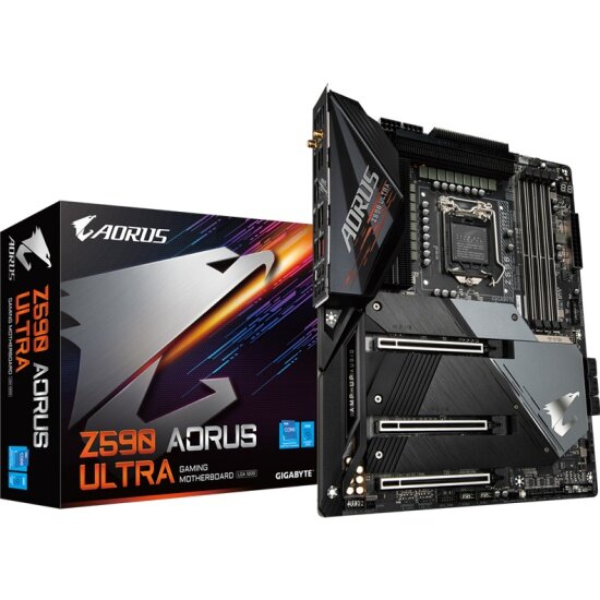 GIGABYTE М.пл. Gigabyte Z590 AORUS ULTRA (rev. 1.0) (LGA1200/Z590/4xDDR4/3xPCI-Ex16/3xM.2/SB7.1/GLAN/Wi-Fi/Bluetooth/HDMI/DisplayPort/ATX) Ret