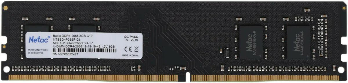 Оперативная память Netac Basic DDR4 - 8Gb, 2666 МГц, DIMM, CL19 (ntbsd4p26sp-08)
