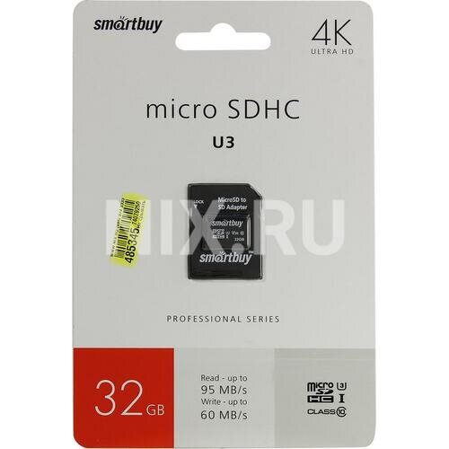 micro SDHC карта памяти Smartbuy 32GB Class 10 PRO U3 R/W:95/60 MB/s (с адаптером SD)
