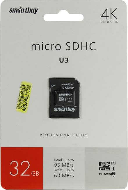 Ниже Вы можете прочитать отзывы на Карта памяти 32Gb - SmartBuy MicroSD Class 10 Pro UHS-I U3 SB32GBSDCL10U3L-01 с адаптером SD, ознакомится с подробными характеристиками, посмотреть интересные обзоры и фотографии на Карта памяти 32Gb - SmartBuy MicroSD Class 10 Pro UHS-I U3 SB32GBSDCL10U3L-01 с адаптером SD.