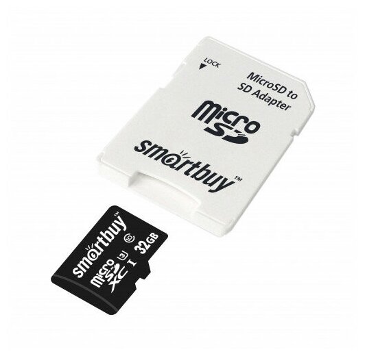 Карта памяти SmartBuy microSDHC 32 ГБ Class 10, V30, UHS Class 3, R/W 95/60 МБ/с, адаптер на SD