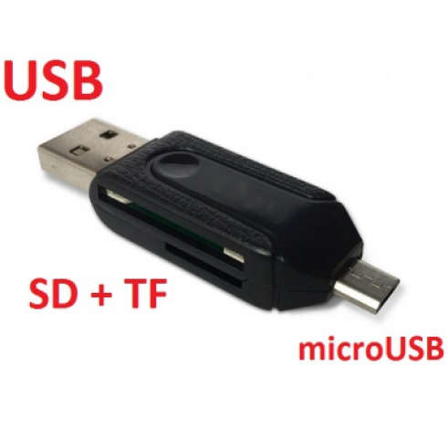 Картридер-OTG Luazon LNCR-001, подключение microUSB и USB, слоты SD microSD, черный