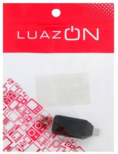 Luazon Home Картридер-OTG Luazon LNCR-001, подключение microUSB и USB, слоты SD microSD, черный