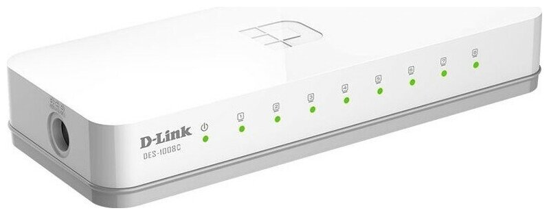 Неуправляемый коммутатор D-Link DES-1008C/B1A с 8 портами 10/100Base-TX и функцией энергосбережения