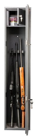 + Качество исполнения на высоте + 4 ружья вмещаются без особых проблем + Допустимая длина ствола оружия - 1368 мм + Есть возможность крепления сейфа к стене |