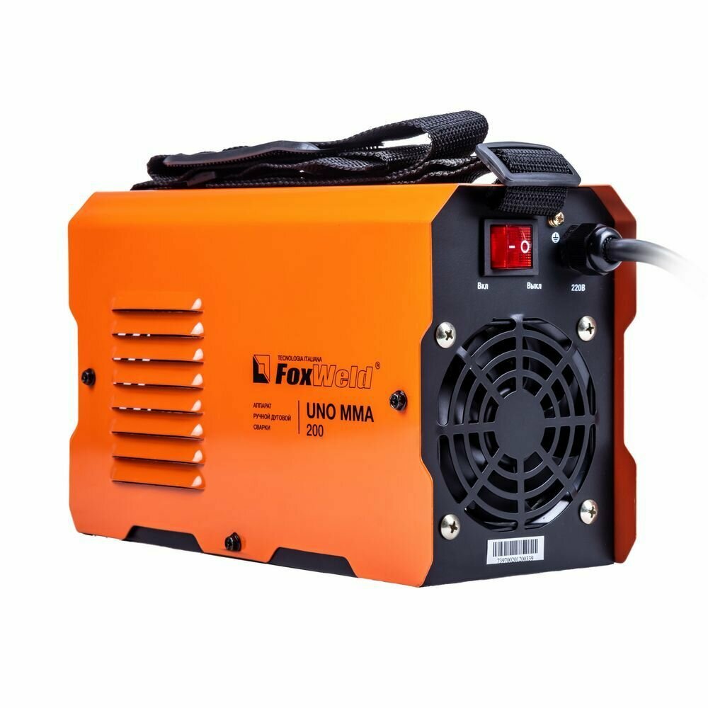 Foxweld Сварочный аппарат UNO MMA 200 варит электродом, легкий поджиг, ручная дуговая сварка, ПВ 100%, Горячий старт, Форсаж дуги, Антизалипание электрода