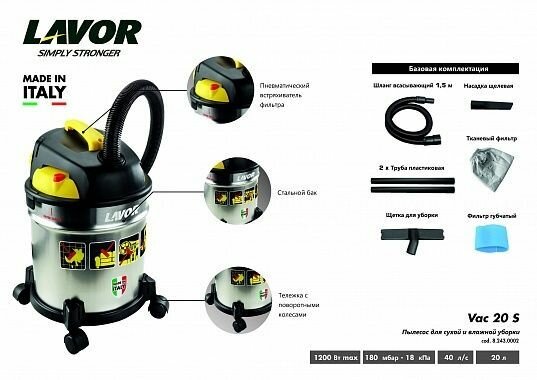 Пылесос Lavor VAC 20 S 8.243.0002 интересное: