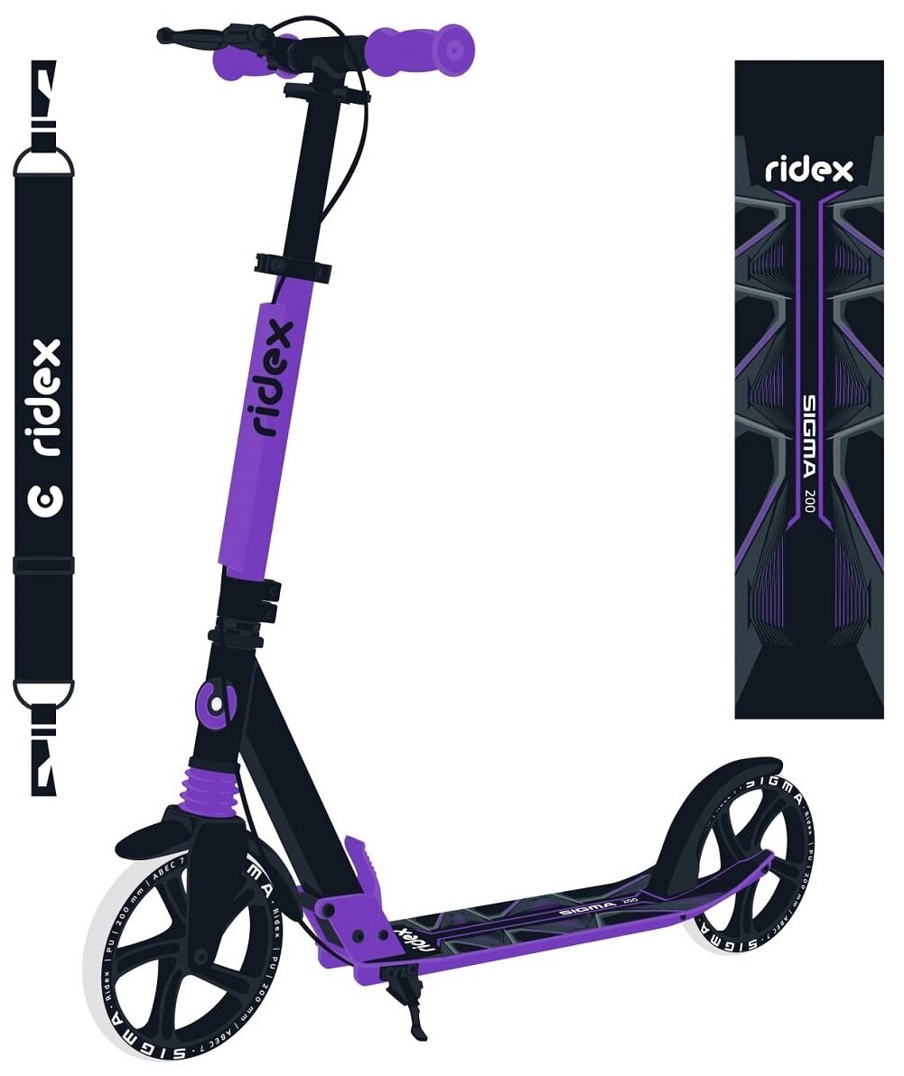Самокат Ridex Sigma, городской, 2-колесный, черный/фиолетовый (ут-00018398)