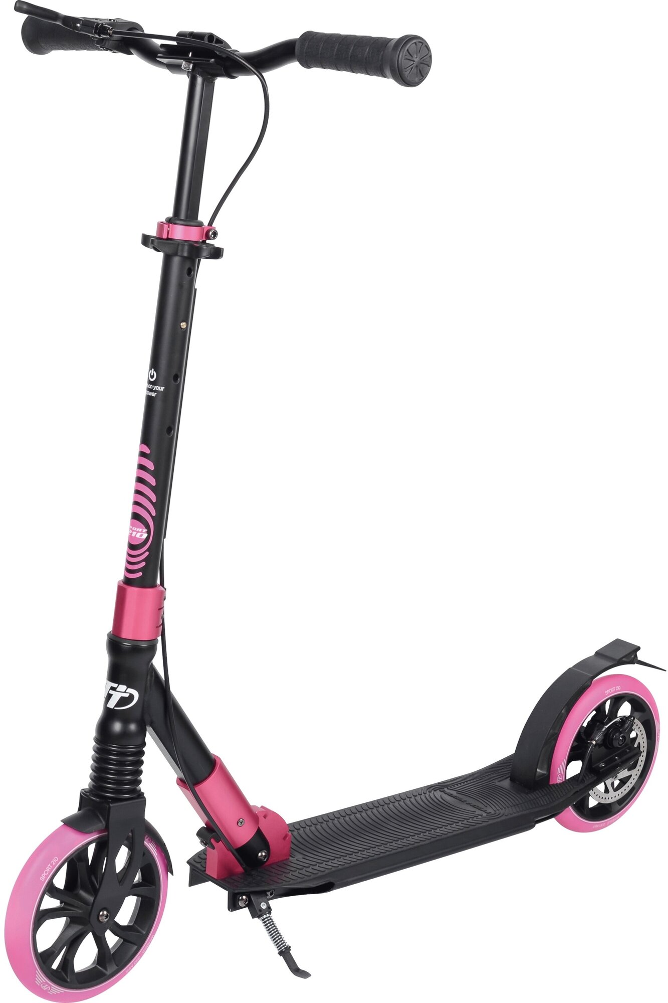 Tech Team Самокат Tech Team Sport 210R 2021 с передним амортизатором с колёсами 200 мм и ручным дисковым тормозом чёрно-розовый