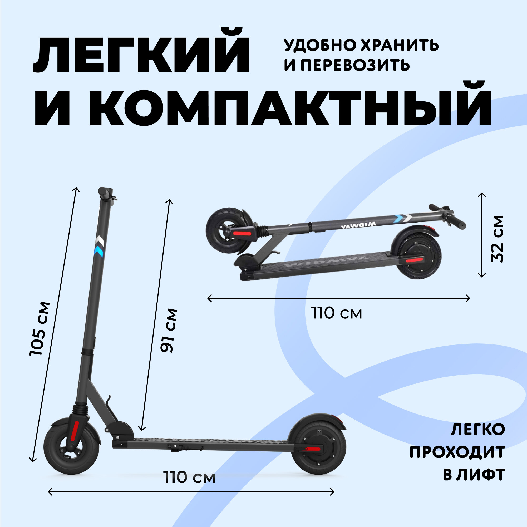 | Плюсы: | Крепкая конструкция, хорошая амортизация, быстро и легко складывается, выдерживает вес до 100 кг, заряда хватает надолго |