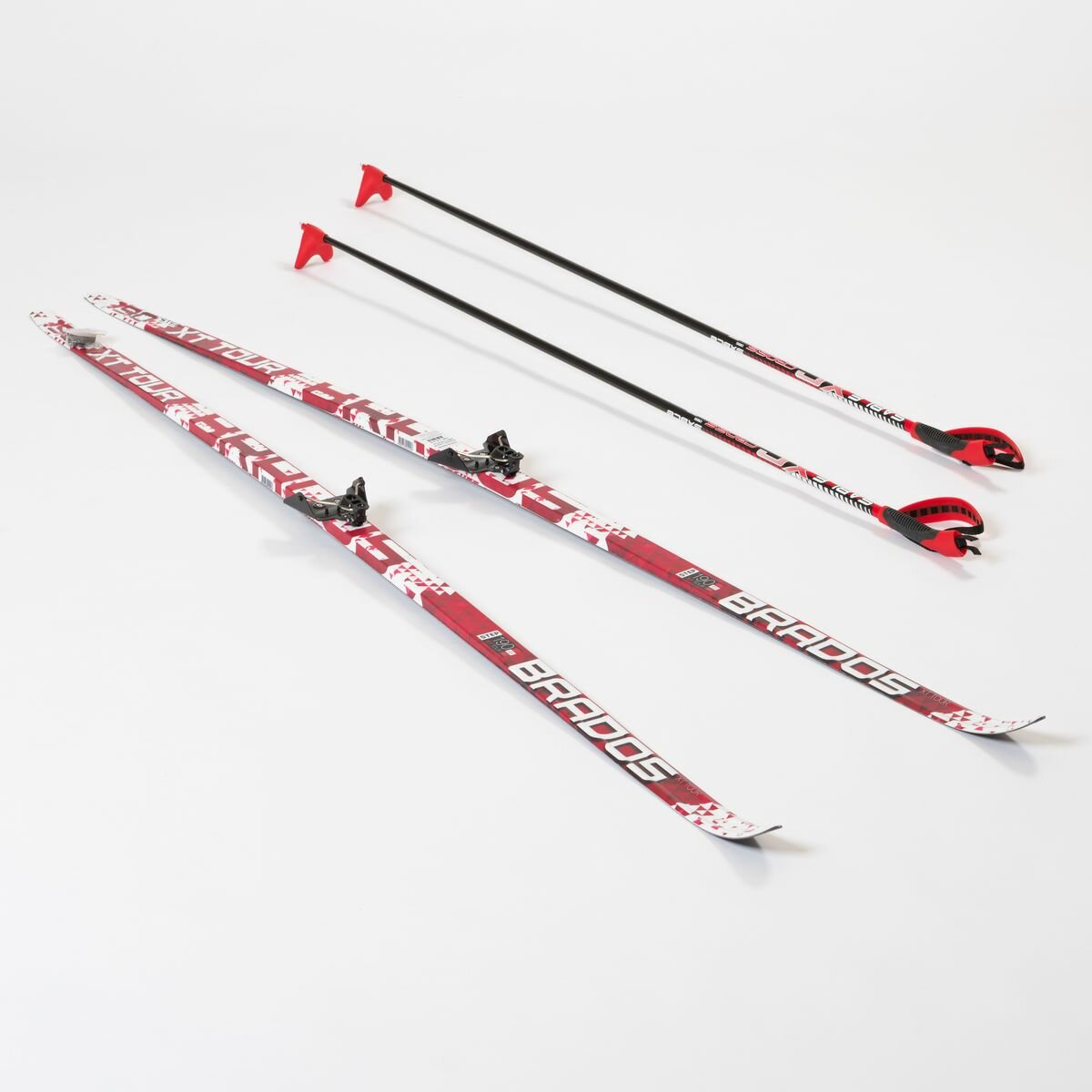 Лыжный комплект STC с креплениями 75 мм с палками 190 WAX Brados XT TOUR Red