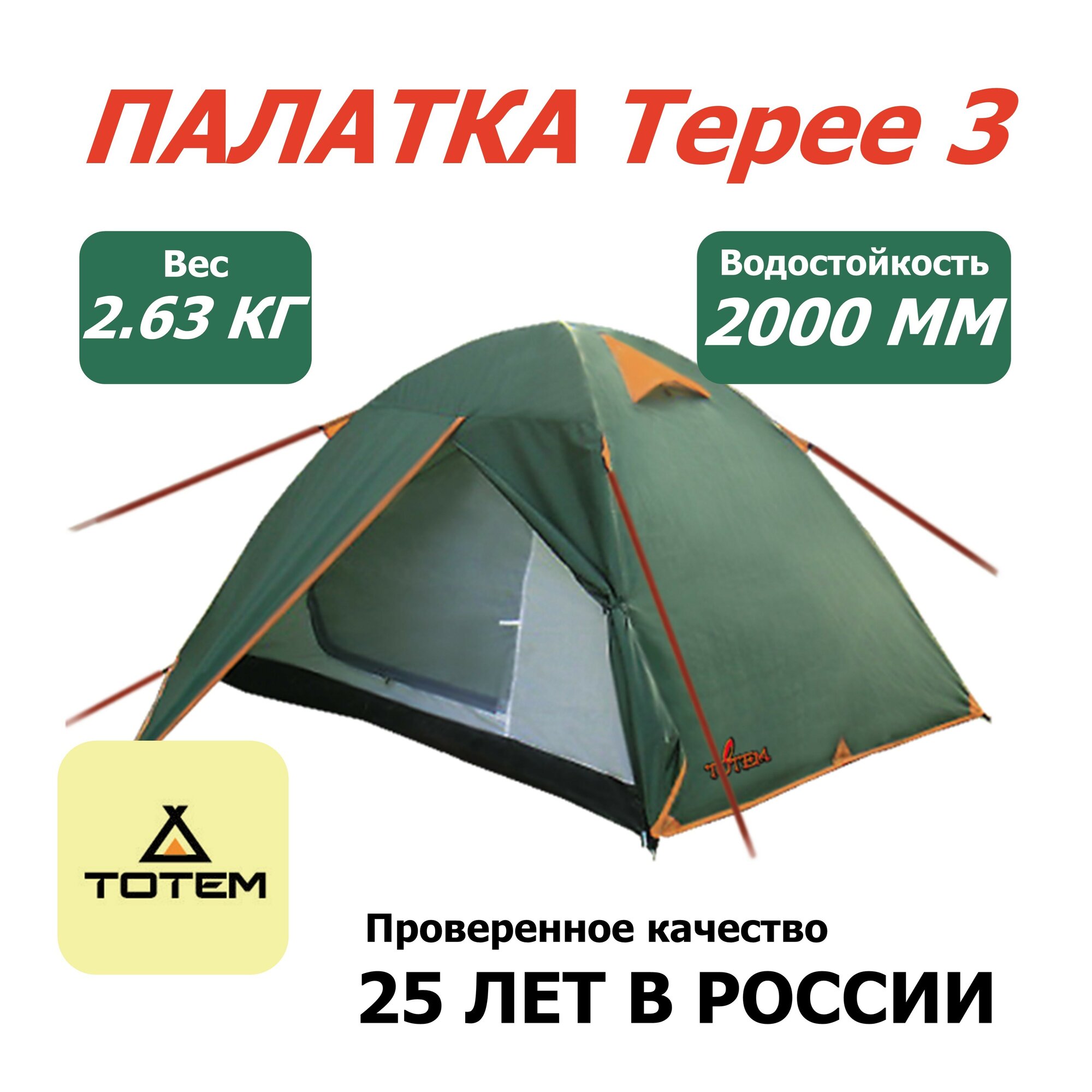 Палатка трекинговая трёхместная Totem Tepee 3 V2, зелeный