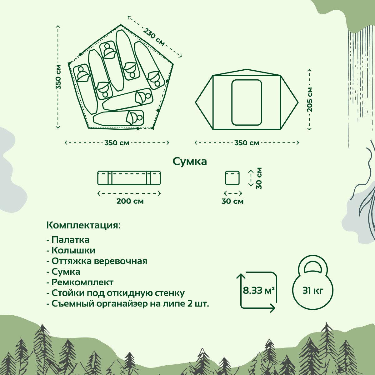 Палатка-шатер Куб Пентагон Берег(двухслойная) интересное: