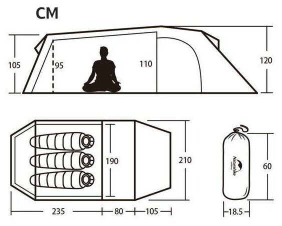 Палатка NATUREHIKE трехместная NH17L001-L с ковриком, оранжевая