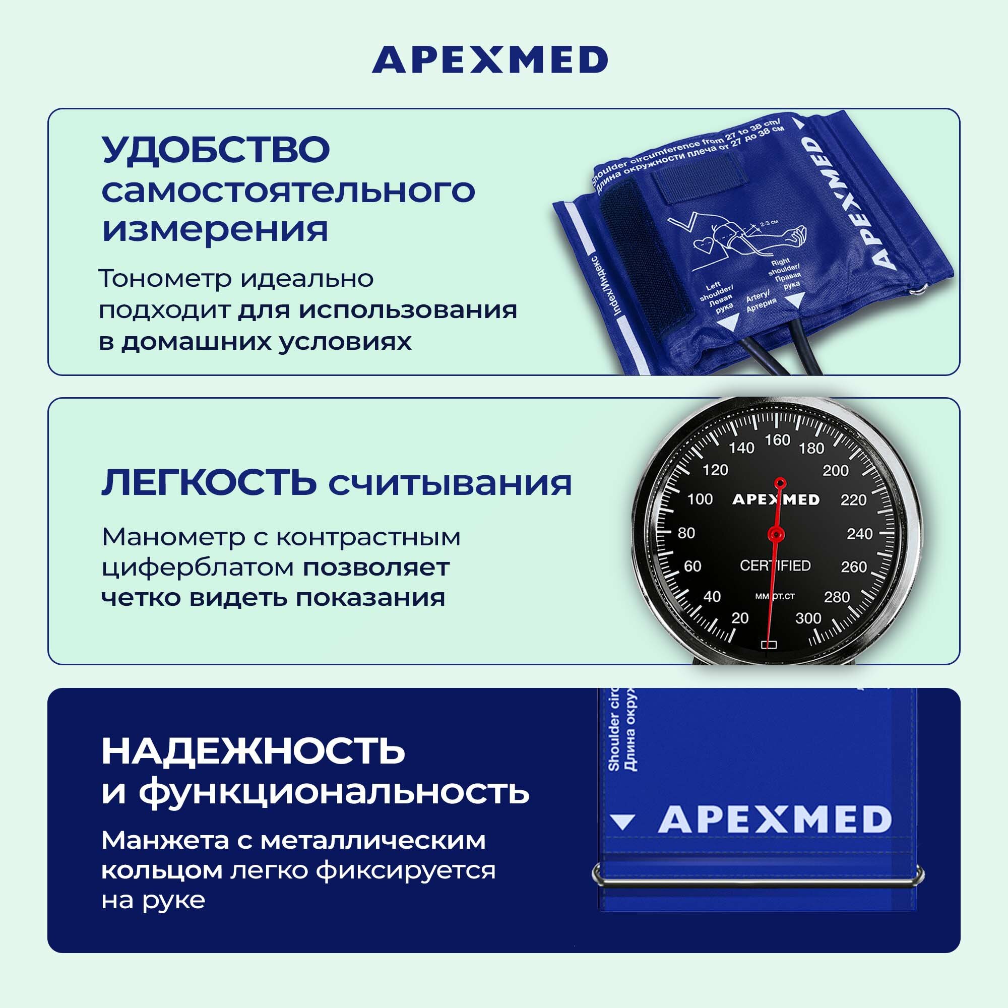 Тонометр механический Apexmed АТ-10, 27-38 см интересное: