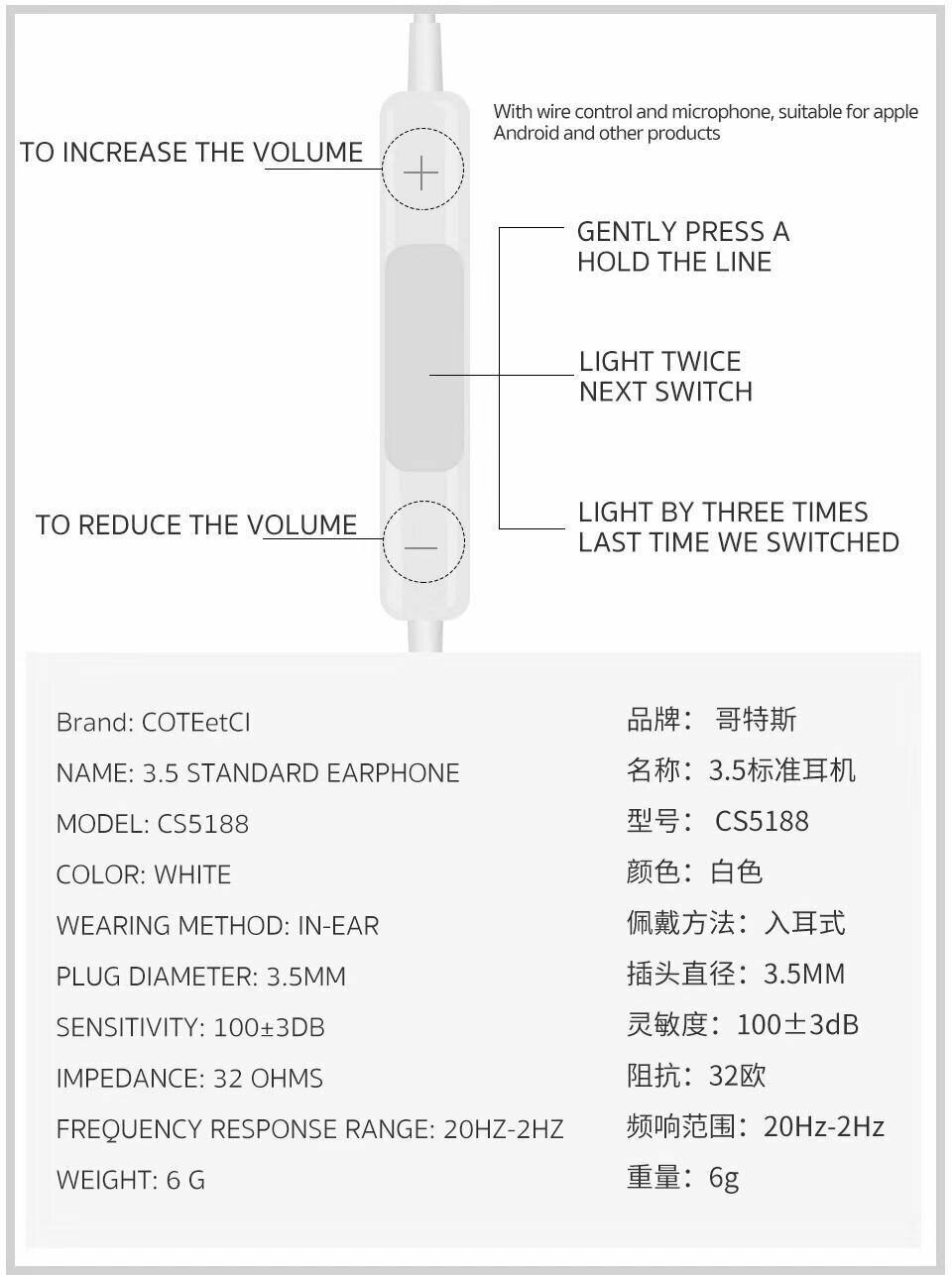Проводные наушники COTEetCI CS5188, Jack 3.5mm, белый интересное: