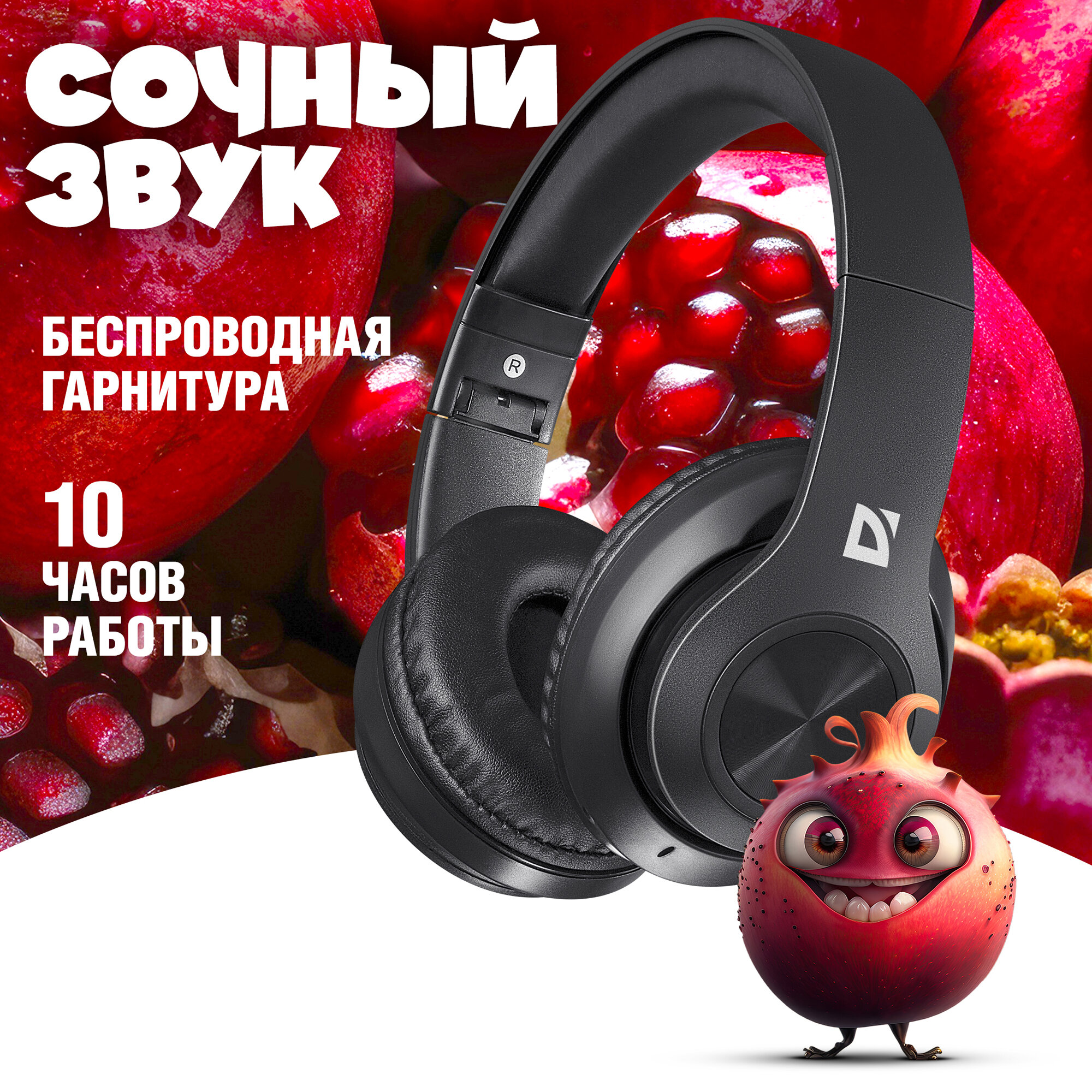 Наушники беспроводные Defender FreeMotion B552 черный, Bluetooth (63552) .