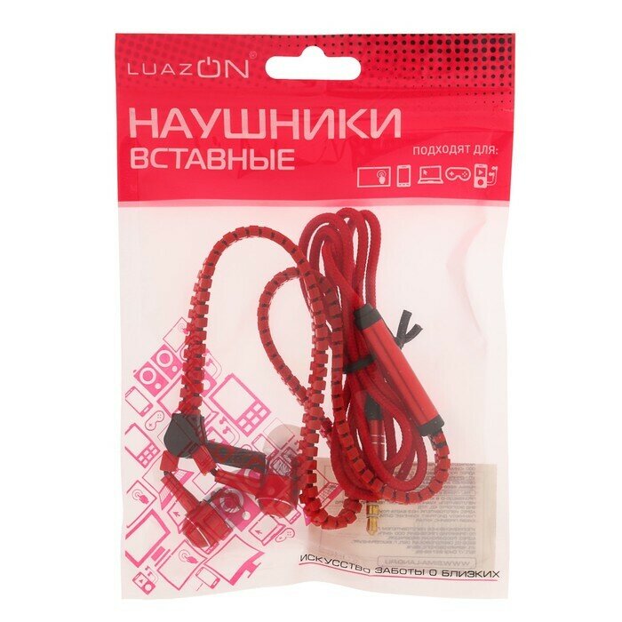 Наушники Luazon Home VBT 1,10 "Молния", вакуумные, микрофон, красные