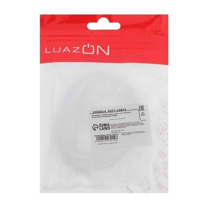 Наушники Luazon Home VBT 1,10 "Молния", вакуумные, микрофон, белые