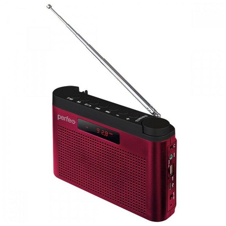 Perfeo радиоприемник цифровой тайга FM+ 66-108МГц/ MP3/ встроенный аккум,USB/ бордовый (I70RED) [PF_C4940]