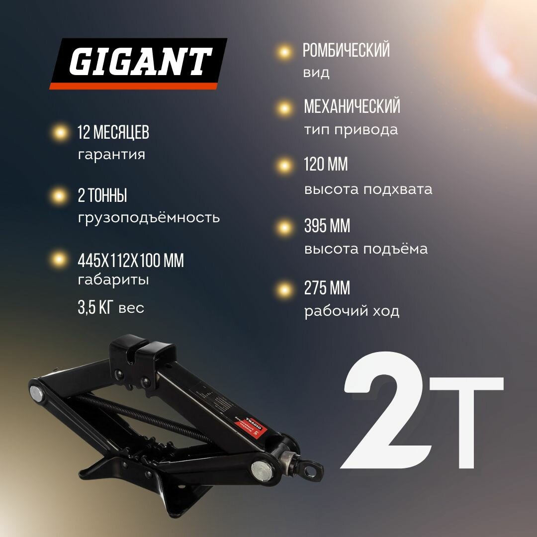 Домкрат ромбический механический GIGANT 2T SJ-2 (2 т) черный