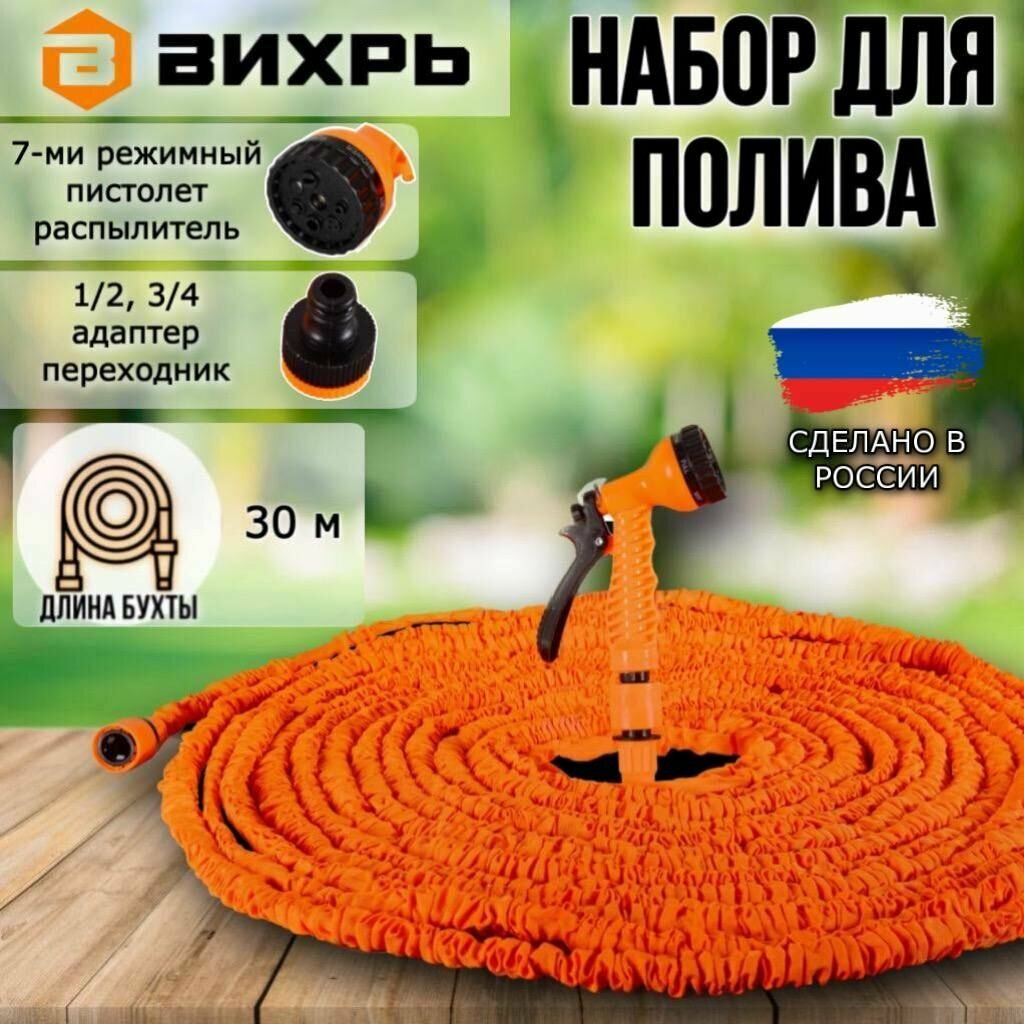 Набор для полива с растягивающимся шлангом Вихрь 30м 73/7/2/27