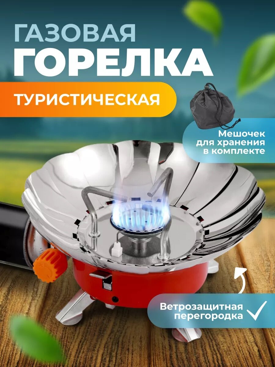Туристическая газовая горелка с пьезоподжигом с подогревом газа газогенератором, горелка перевертыш