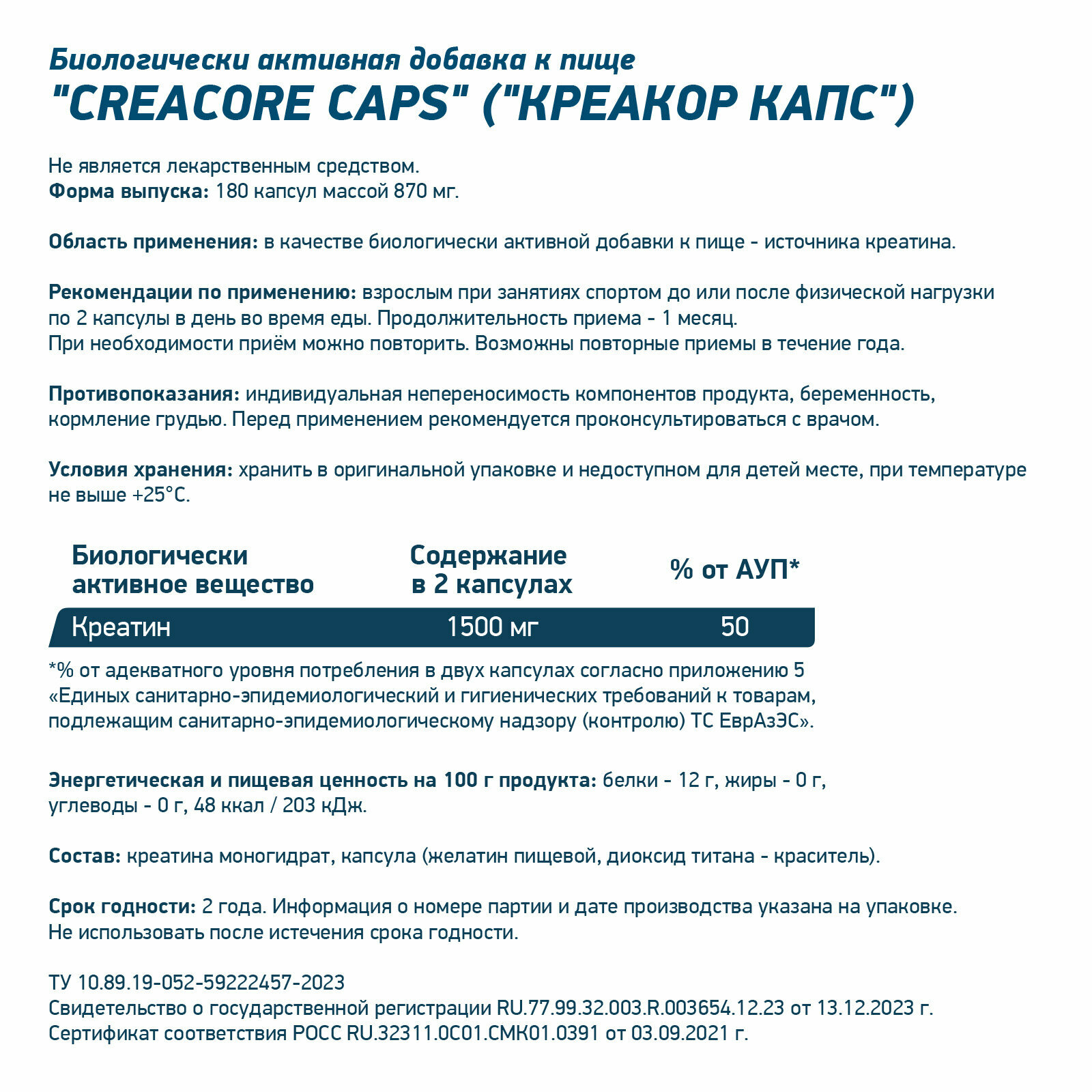 CREATINE Capsules 180 caps интересное: