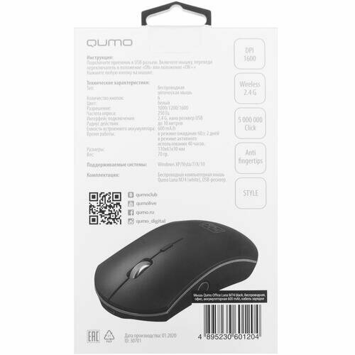 Мышь Qumo Office Luna M74 Black 30701