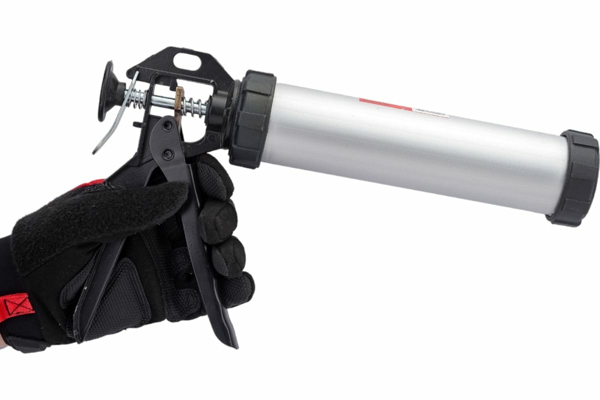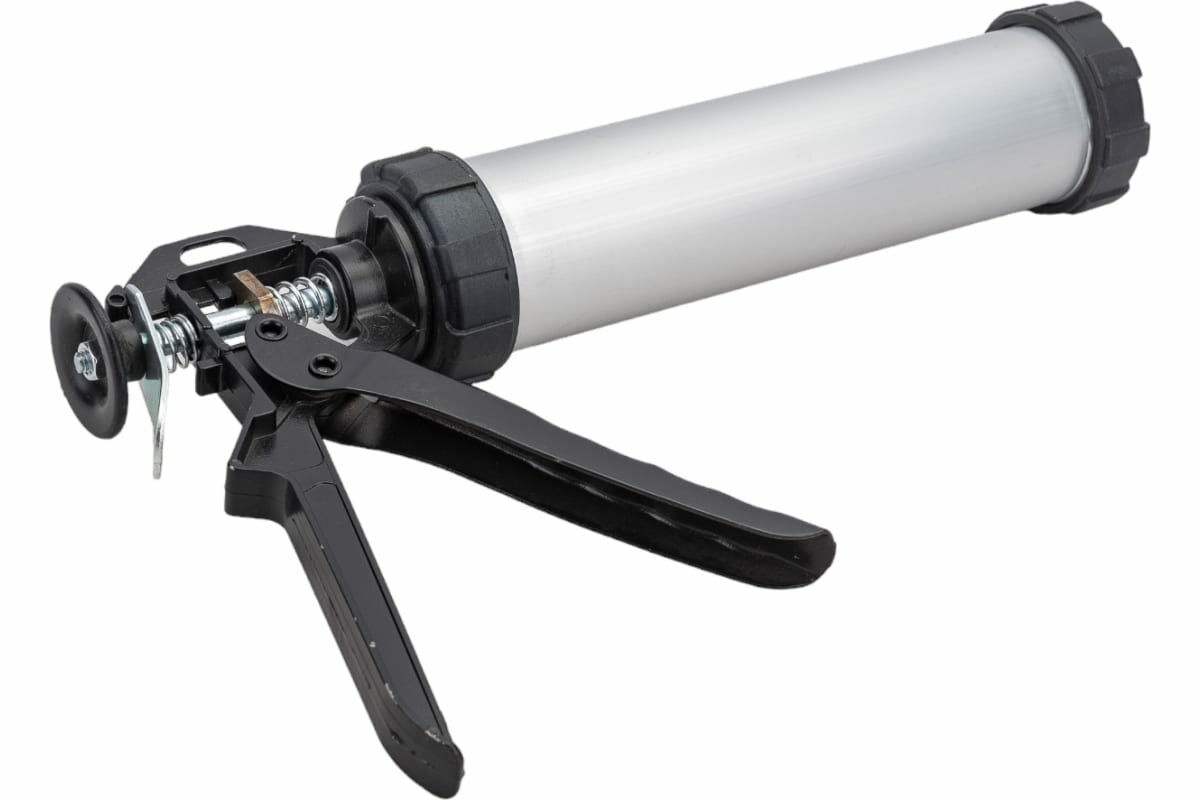 | Плюсы: | Крепкий, мощный и удобный пистолет, можно использовать и с картриджем, и с тубой. |