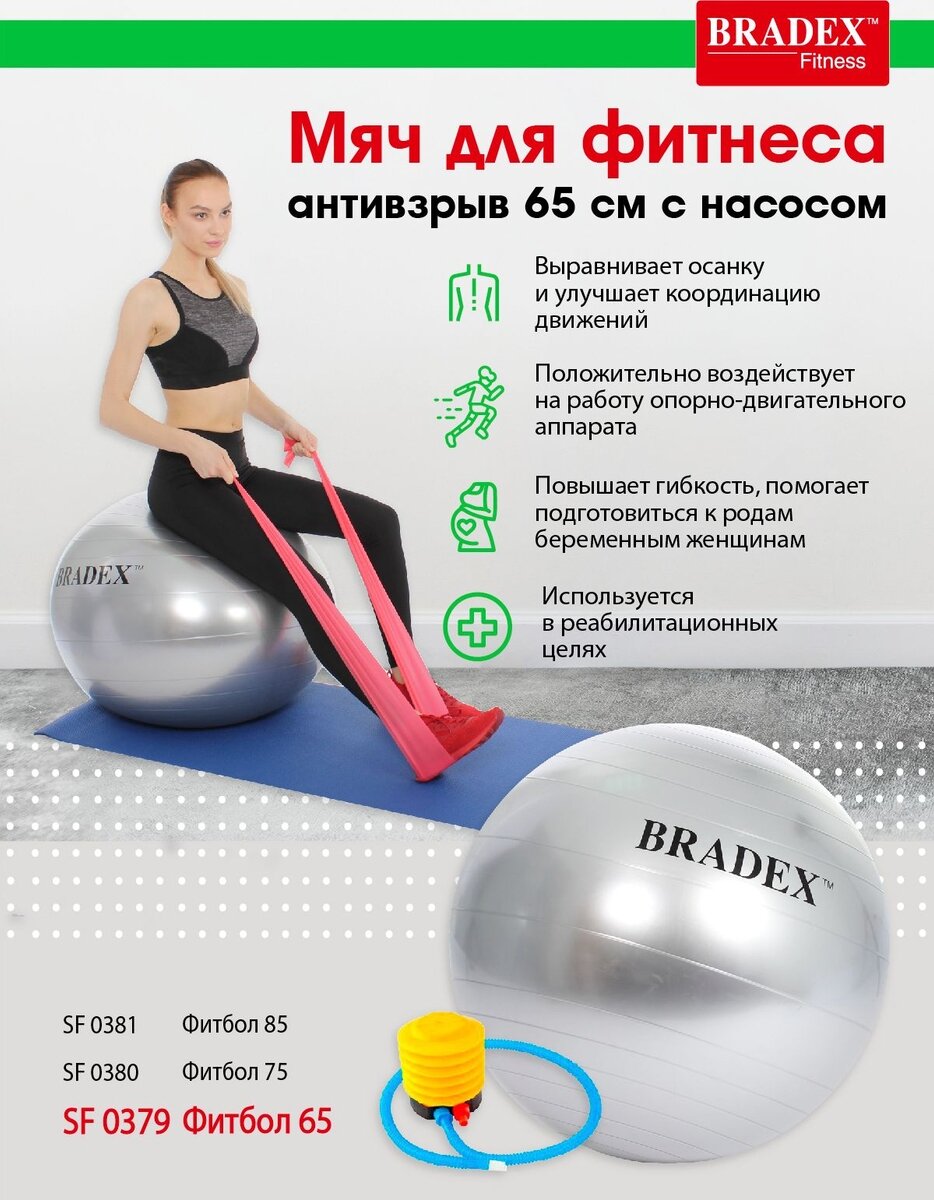 Купить BRADEX Мяч для фитнеса антивзрыв 65 см с насосом, BRADEX