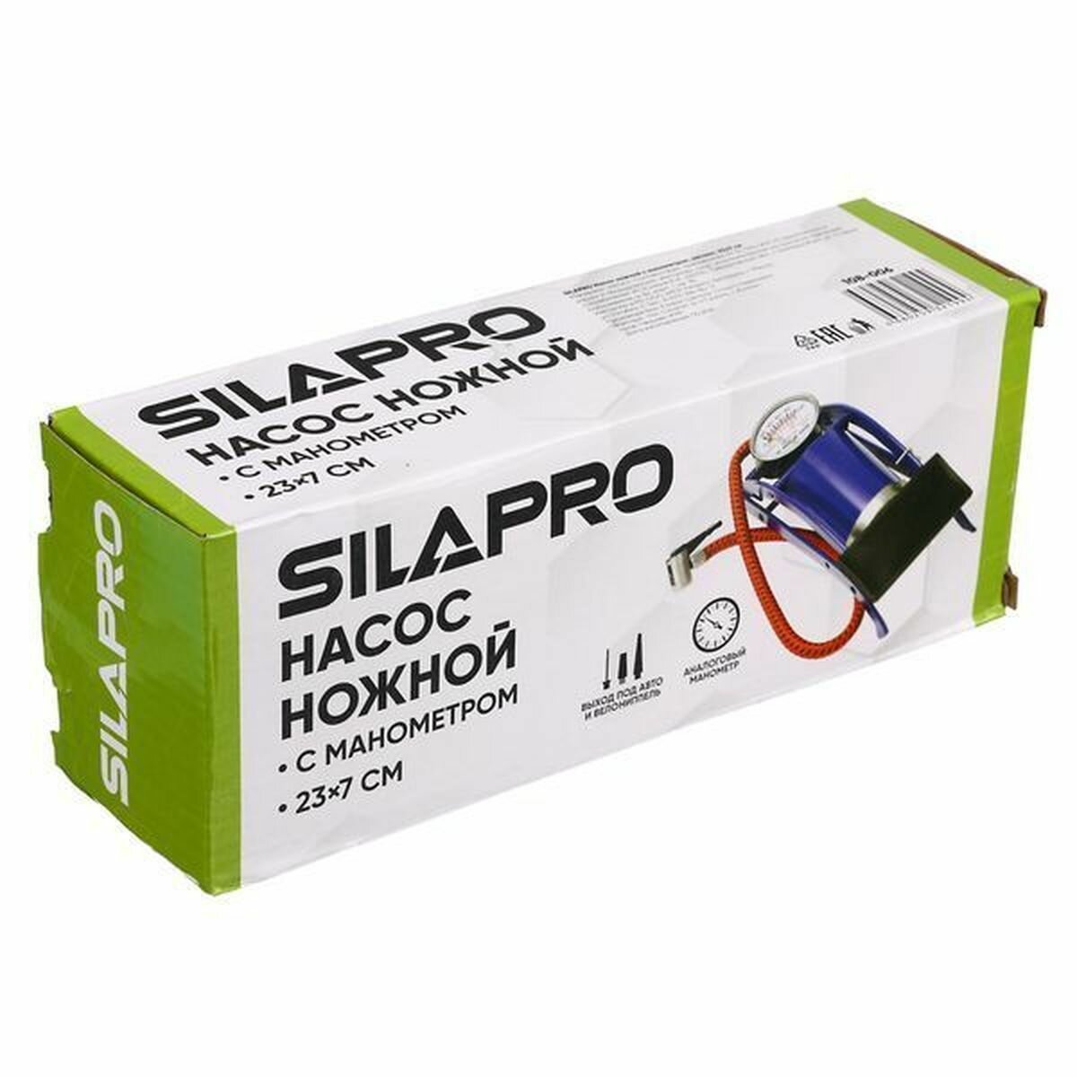 Насос ножной с манометром, металл, 23x7см, SILAPRO