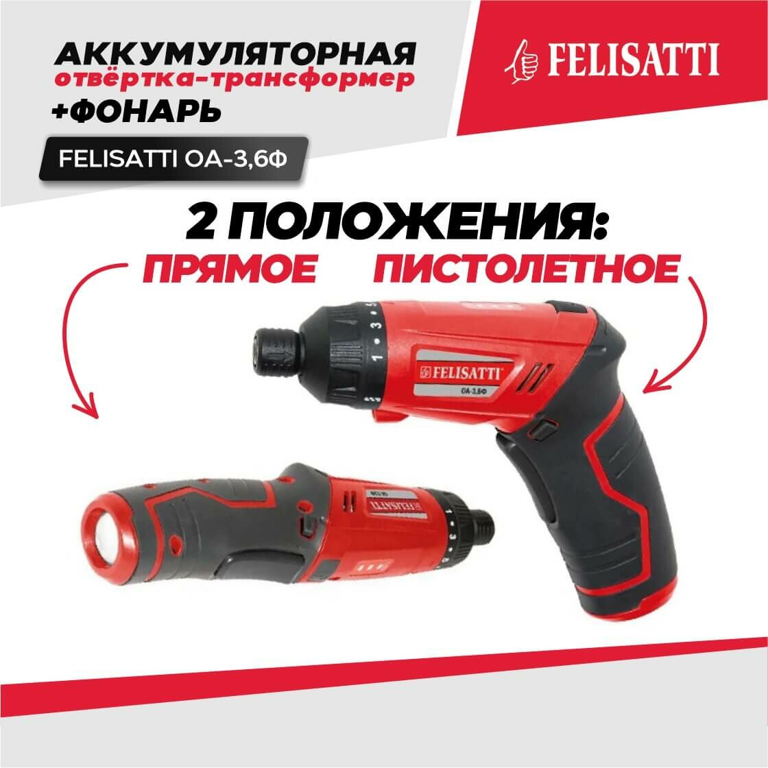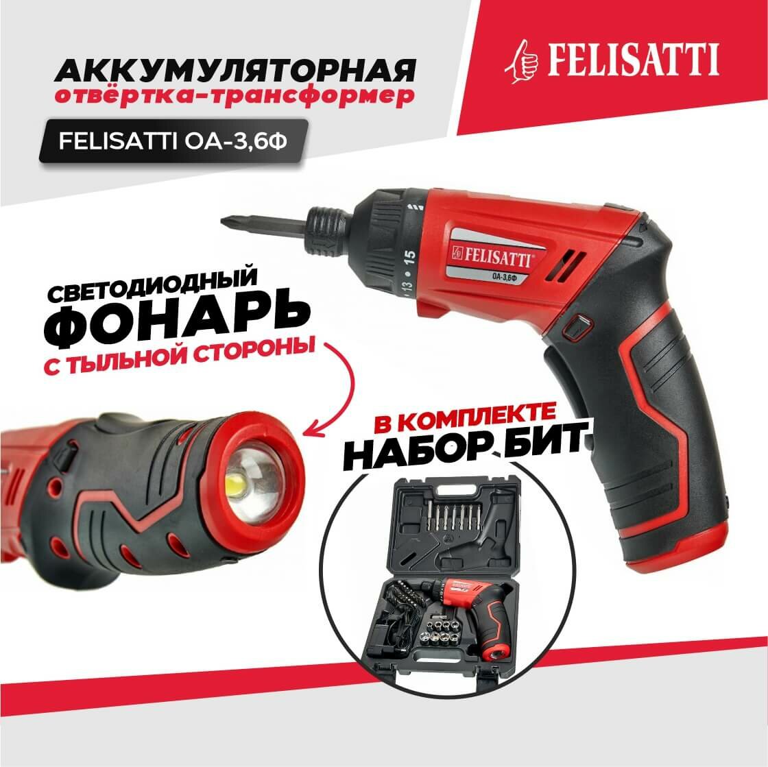 Аккумуляторная отвертка Felisatti ОА-3,6Ф (кейс, Li-Ion)