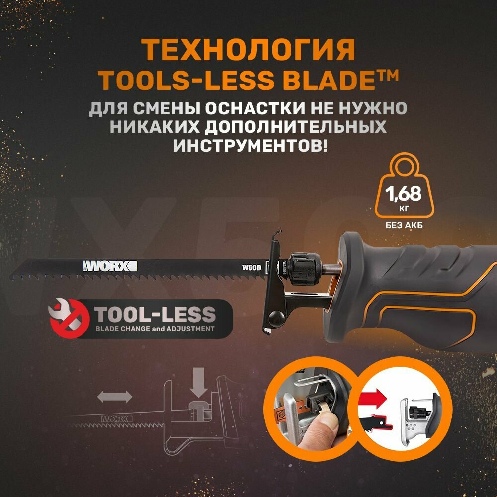 Пила сабельная аккумуляторная, без АКБ и ЗУ, WORX (WX500.9)