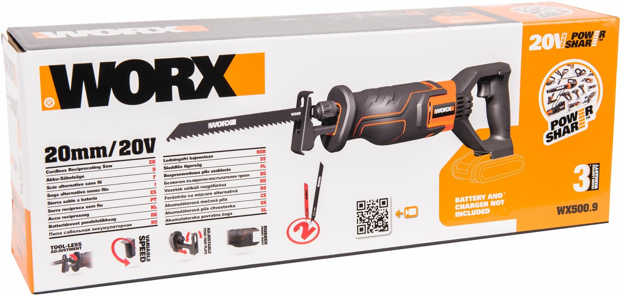 Аккумуляторная сабельная пила WORX WX500.9, без АКБ и ЗУ, коробка