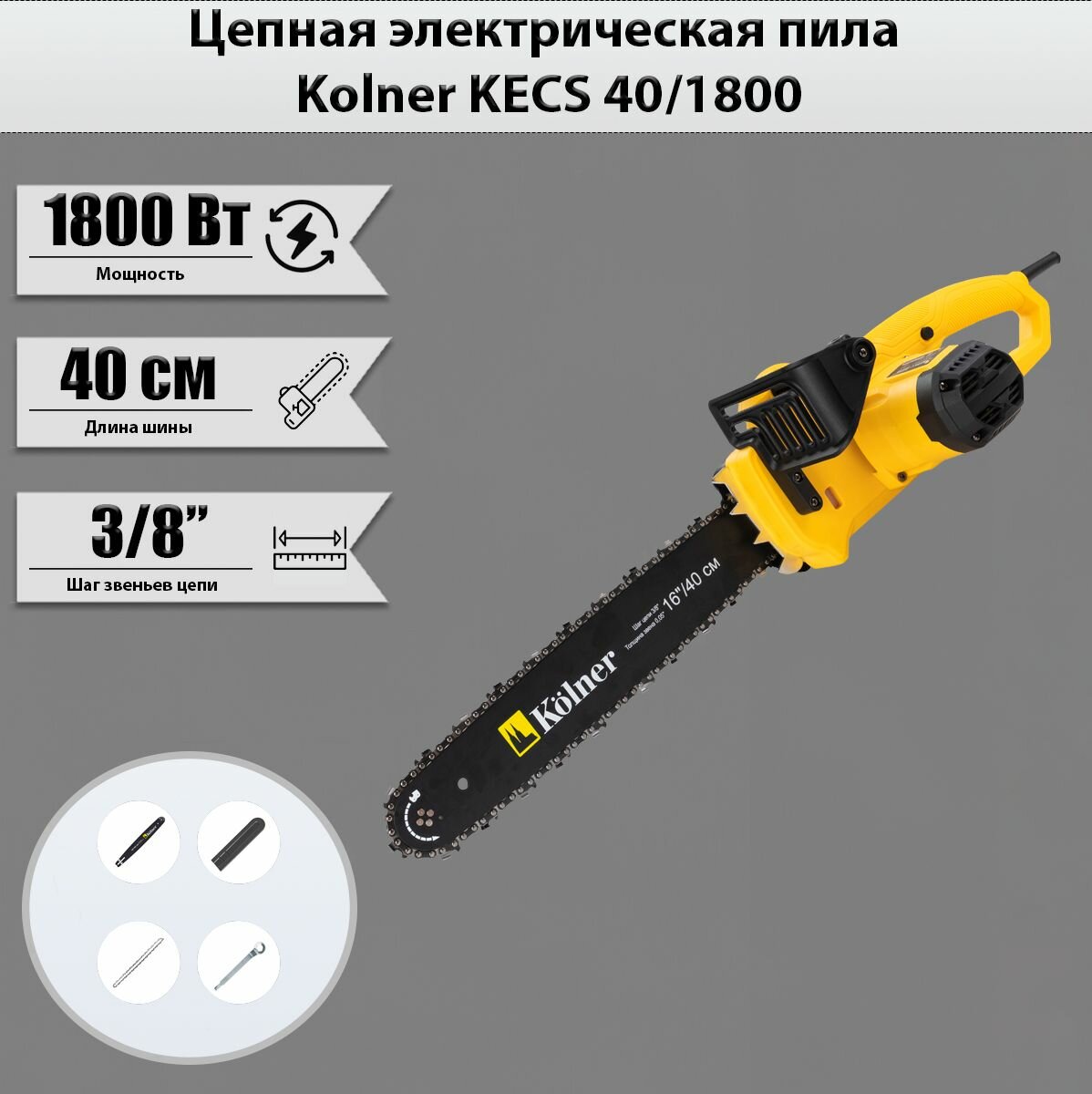 Пила цепная электрическая KOLNER KECS 40/1800, (арт. кн40-1800ецс)